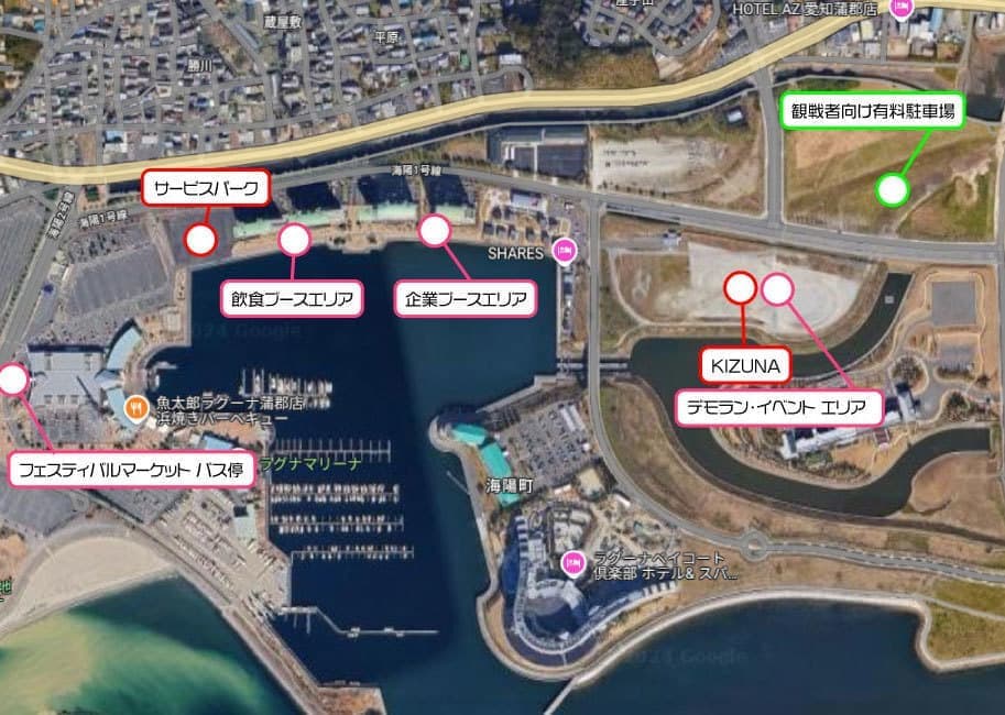 観戦者向け特設有料駐車場位置情報(Googleマップより)